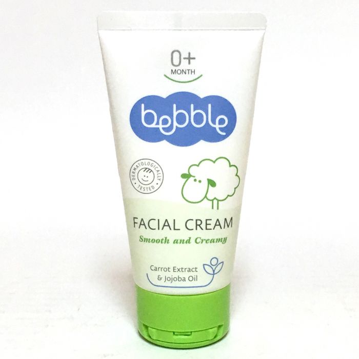 Вашето срце е исполнето со радост и љубов пред очите на тоа мало носе, розовите образи и тие мали уши – затоа не заборавајте да ги заштитите добро! Во секојдневната рутина за хигиена и нега, најекспонираните делови од телото на бебето често се забораваат. Кремата за лице, со мека текстура и активна заштитна формула е богата со природни масла. Кремот ја храни, омекнува и штити деликатната кожа од надворешните влијанија. Екстрактот од морков делува како природен антиоксиданс, ја подобрува регенерацијата на клетките и делува како природна бариера против сончевата светлина. Честото миење и бришење на лицето на бебето, особено после јадење или излегување, може да доведе до црвенило и суви кожа. Кремот за лице на Bebble помага да се задржат оние меки и слатки образи.