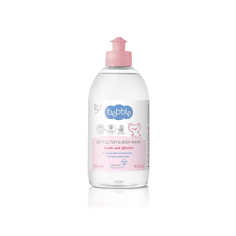 Вашата колекција од шишиња, чаши, играчки и прибор од бебињата за миење веројатно расте во текот на денот. За време на секојдневната исхрана, играње и спиење, сите ќе го пронајдат патот до устата на Вашето бебе, па затоа сакате да ги одржувате чисти и подготвени за употреба. Bebble дава рака со ефикасна течност за перење, која брзо ги чисти сите траги од храна и млеко. Неговата формула се заснова на активни состојки кои се целосно растворливи во вода, и не содржи додадени средства за боење. Затоа, бидете сигурни дека, после испирањето, нема хемиски траги на садовите и играчките на Вашето бебе. Бескомпромисно ефикасно во отстранување на остатоци од храна, но сепак нежно за рацете. Специјалната формула за миење садови на Bebble содржи глицерин за да помогне во омекнување и навлажнување на Вашата кожа.