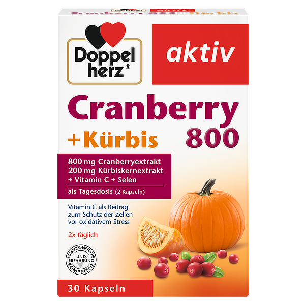 DoppelHerz Cranberry + Pumpkin seeds (Брусница со семки од тиква) со Витамин Ц и Селен, за заштита на клетките и поддршка на имунитетот.