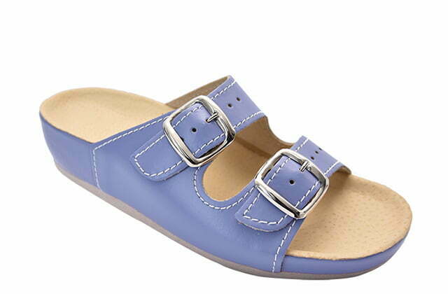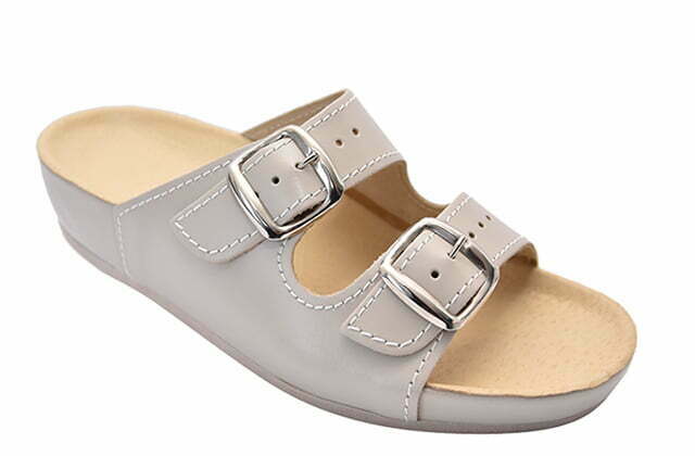GREY KLARA е извонредна отворена папуча која се прилагодува на ширината на Вашите стопала. Идеален избор е за топлите летни денови, али одлично се снаоѓа и како домашна папуча во текот на целата година. Каишите се осигурани со метални шноли кои на стопалото му даваат стабилност и секој чекор го прават искличително удобен. Доатапни се во 5 нијанси природна говедска кожа