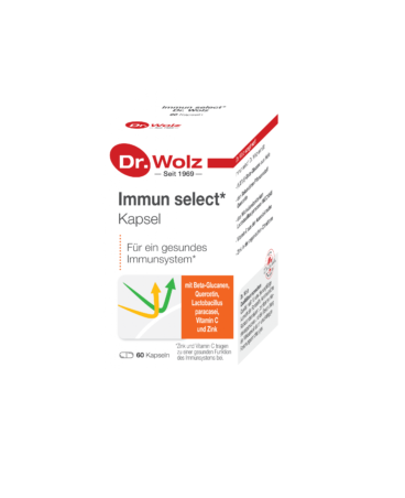 Immun Select Dr. Wolz претставува иновативна комбинација на микронутриенти, во кои се клучни имун-активните супстанции и антиоксидантите, како витаминот Ц (од ацерола) и органски врзаниот цинк, кои се комбинираат во природен имуноактивен комплекс, инкорпориран со биоактивната супстанција бета-1,3 / 1,6- глукан (од ѕидот на квасните клетки), млечно-киселинската бактерија Lactobacillus paracasei MCC1849 и фитохемискиот антиоксиданс кверцетин.