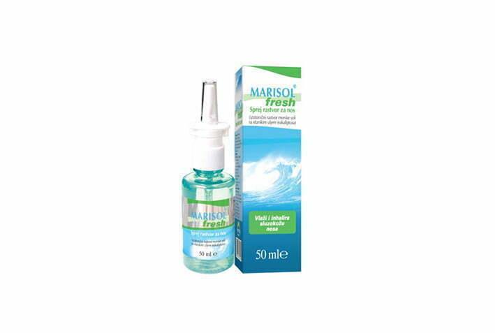 Marisol fresh спреј за нос/ Марисол фреш спреј /раствор за нос е раствор од морска сол, збогатен со етерско масло од еукалиптус. Наменет е за оние лица кај кои е отежната правилната физиолошка функција на носната слузокожа, како и за секојдневно одржување на хигиената на носната шуплина. Marisol fresh спреј растворот ја враќа природната влажност на носната слузокожа, способноста за самопрочистување и нормална продукција на слуз која ја штити од сушење и механички надразнувања (чад, прав итн.). Ја подобрува проодноста и го олеснува циркулирањето на воздухот низ горните дишни патишта, а тоа е особено корисно при настинка, грип, како и кај проблемите со синуси. Растворот е збогатен со етерично масло од еукалиптус кое дејствува антисептично, го ублажува отокот на носната слузокожа и помага при инфекции на горните дишни патишта.