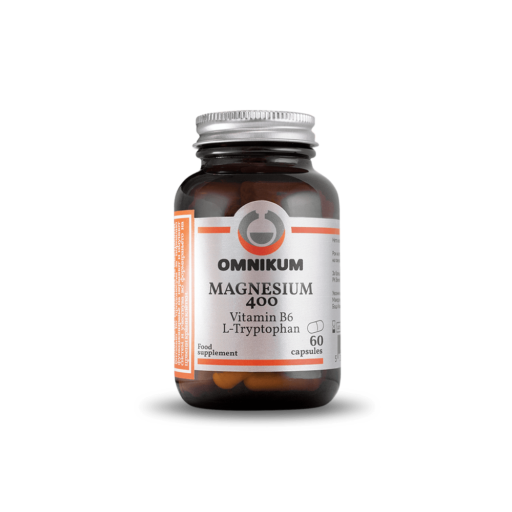 Секоја капсула Omnikum Magnesium 400 содржи 400mg елементарен магнезиум, L-триптофан 25mg и Витамин B6 1.4mg.