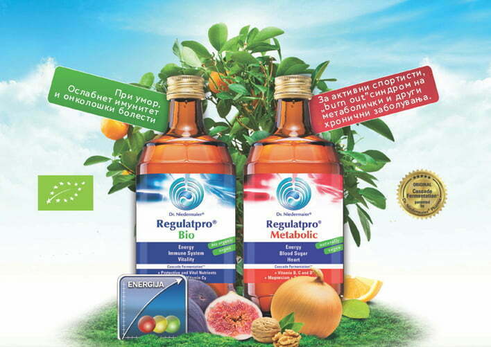 Регулатпро Био е уникатен производ преку каскадна ферментација – уникатен метод, патентиран во 2004 година. Претставува биоактивен концентрат кој содржи ензимски фрагменти: пептиди, трипептиди и олигопептиди, како и полинофели, флавоноиди и пробиотички компоненти од овошје, јатки и зеленчук, одгледани во сертифицирани био услови. Ја обновува ресинтезата на системските ензими и го зголемува производството на АТФ во клетиките.